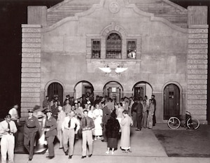 The March Field Theater, built in 1933, was a popular place for the soldiers, family members and even dates. The theater façade, a beautiful example of the Mission Revival style seen throughout the base, is almost identical to that of the post theater at Fort Huachuca in Arizona, and was possibly a