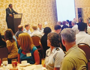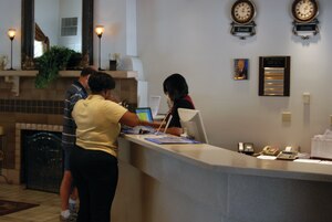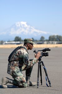 Tech. Sgt. Zita Cordova-Martinez, 452nd AMDS, practices sighting techniques wearing a chemical protective mask while attending M-16 rifle qualification training at March ARB. Rifle qualifications with a gas mask are required for all service members deploying to CENTCOM. M-16 instructor Tech. Sgt.