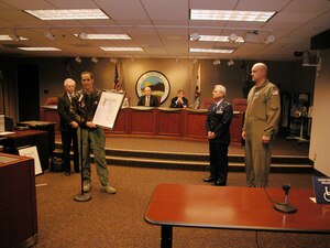 Navy lieutenant receives Bronze Star pinned on by Medal of Honor recipient Col. Lewis Millett. During the Korean War, Millett led America's heaviest bayonet charge since the Civil War.Navy Lt. Ed Giron, executive officer, Naval Operational Support Center (NOSC) Moreno Valley, was presented a Bronze