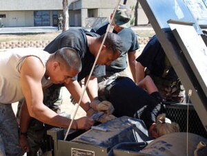 At March Air Reserve Base, the 163rd Reconnaissance Wing, Air National Guard and 452nd Air Mobility Wing, Air Force Reserve, participated in a joint bivouac exercise forthe first time in the units' history, April 8 - 11 at the Regional Training Site.Defined by Webster, a bivouac is a temporary