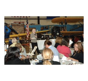 Combined Federal Campaign Chairperson Susan Blum speaks to CFC key workers, supervisors and local coordinating committee members at a luncheon at the March Field Museum. The final contribution tally for Western Riverside CFC was $275,460, with March ARB's contributions totalling $105,215 of that