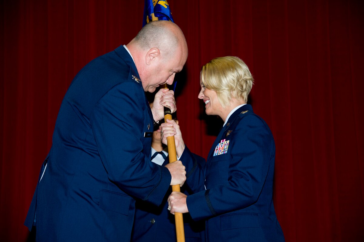 452d AES Change of Command Published July 26, 2012 By 452 AMW 452 AMW MARCH AIR RESERVE BASE, CALIF. -- Lt. Col. Carolyn Newhouse, right, prepares to take command of the 452d Aeromedical Evacuation Squadron on July 21 during an assumption of command ceremony in the Cultural Resource Center. Col. Mark Sigler, left, 452d Operations Group commander, was the presiding officer for the event. Senior Master Sgt. Josephine Carrillo, 452d AES, holds the guidon which symbolizes the transfer of authority from the old to the new commander.
